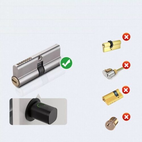 Erleben Sie eine neue Dimension von Sicherheit und Komfort mit dem Smart Lock Türschloss-Zylinder. Dieses moderne Bluetooth-Zylinderschloss macht herkömmliche Schlüssel überflüssig. Ob per Fingerabdruck, Pincode, RFID-Chip (IC-Karte), Smartphone-App oder mechanischem Notschlüssel – Sie entscheiden, wie Sie Ihr Zuhause betreten. Dank der hochwertigen Verarbeitung aus Aluminium und Messing bietet dieses Schloss höchste Zuverlässigkeit für Ihr modernes Smart Home.
