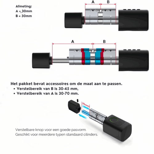 Schieben Sie den Smart Lock Zylinder ein und passen Sie die Länge an.